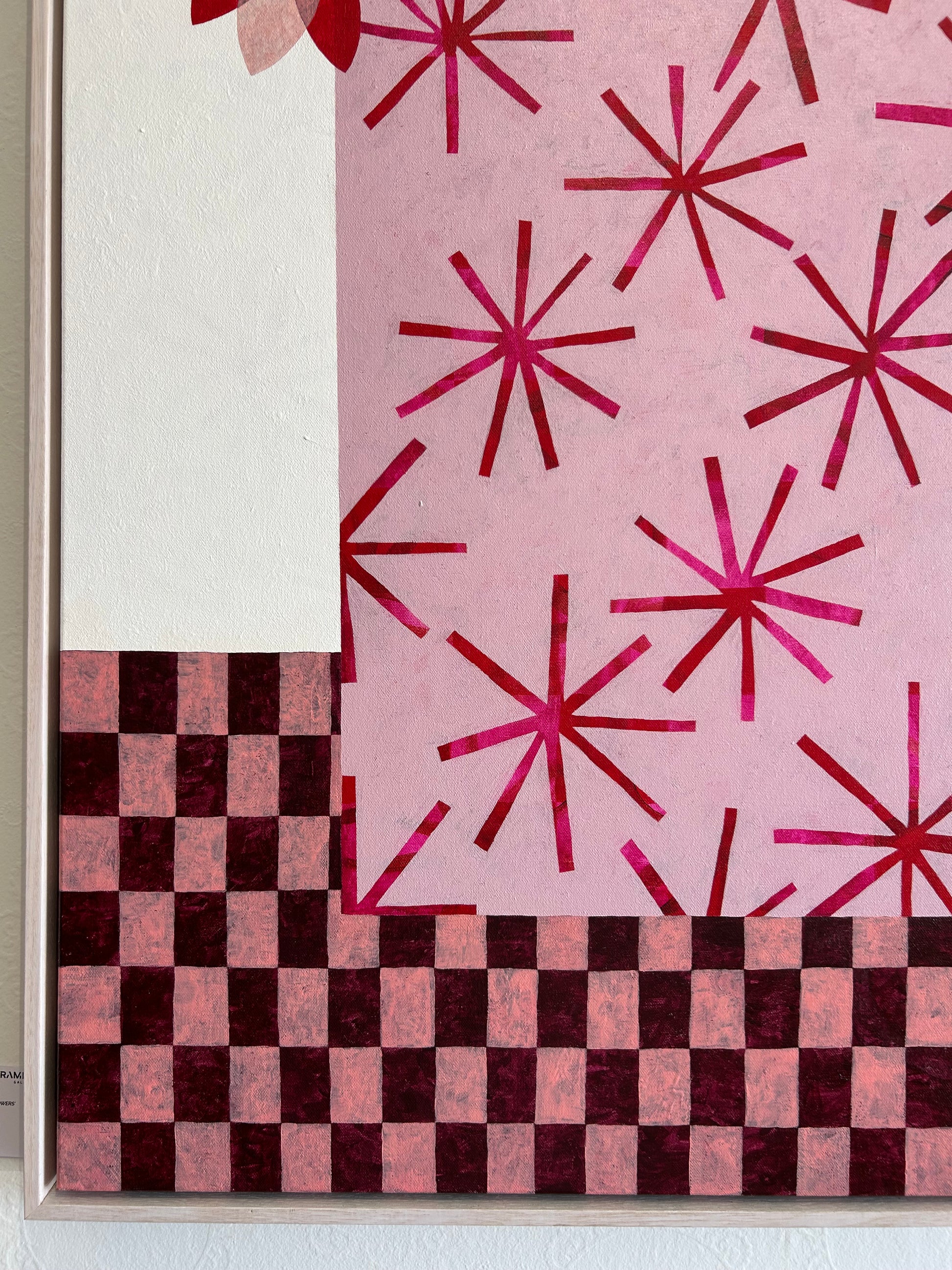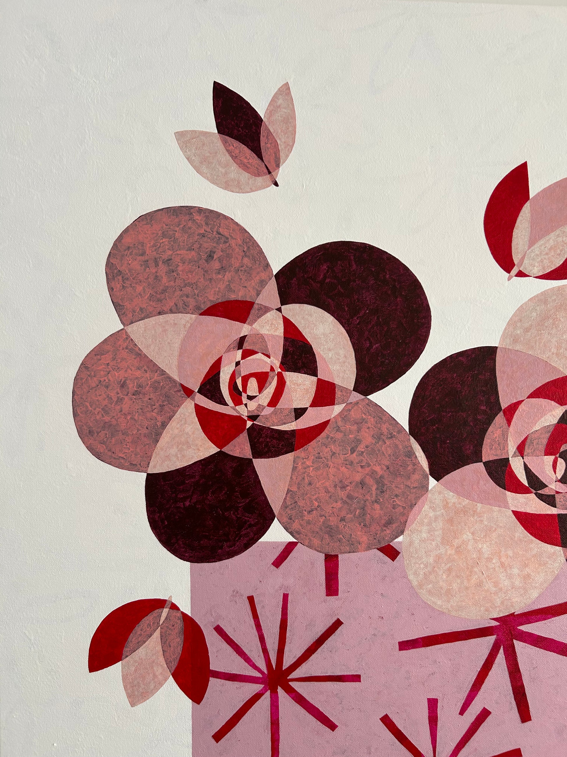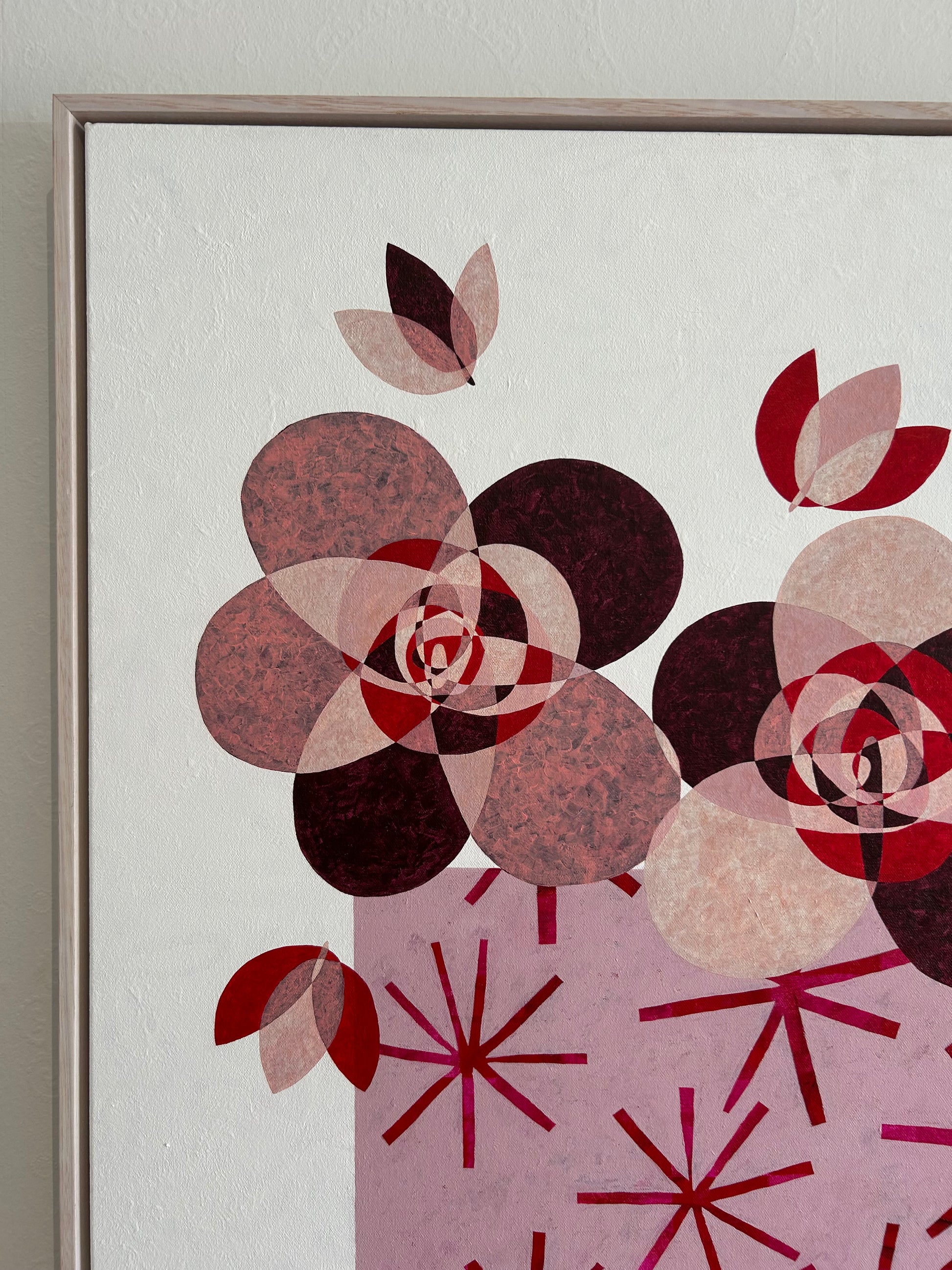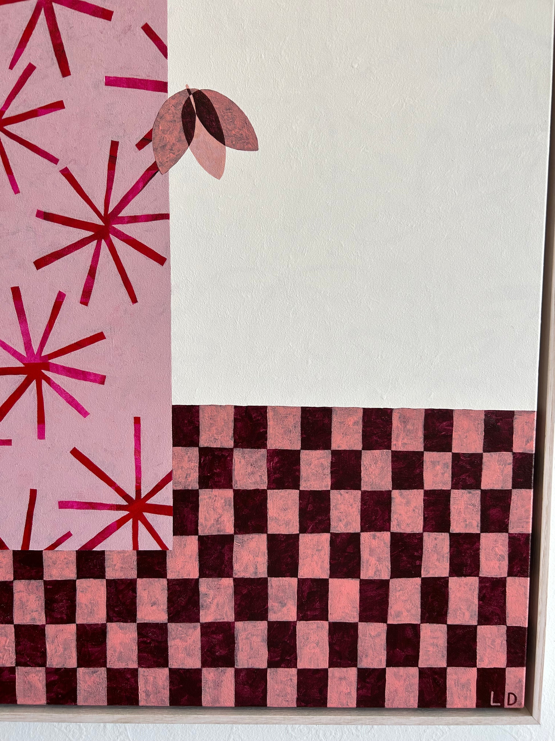An original 916mm x 1220mm acrylic painting on canvas, featuring Devery Arts signature burgundy and ash pinks with a pop of red and softened by antique white. I think you can see how fun this piece was to paint, and the best bit? It's named by my 6 year old nephew who is a budding artist himself!